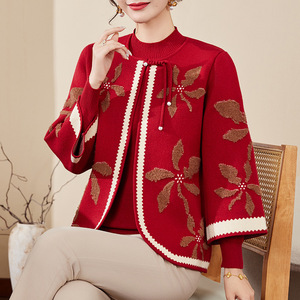 妈妈秋装2025新款时尚针织开衫外套中老年女装春秋毛衣两件套装