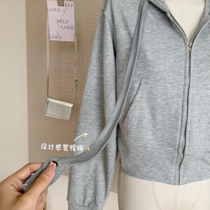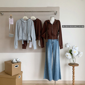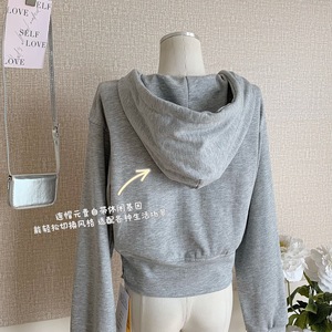 美式复古短款连帽卫衣外套女早秋季小个子长袖开衫上衣