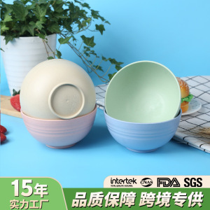 跨境外贸小麦秸秆碗学生宿舍家用塑料汤碗圆形大号泡面碗商用批发