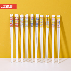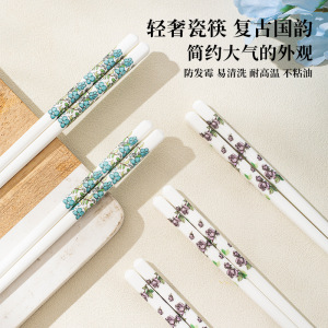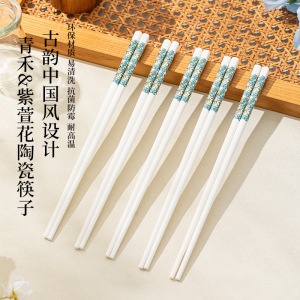 青禾紫萱花陶瓷筷子食品级家用高档耐高温复古抗菌防霉防滑陶瓷筷