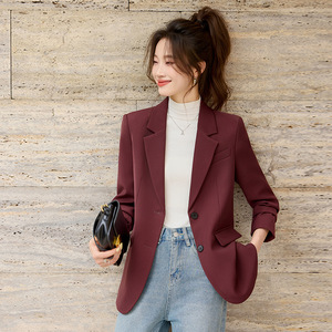 梅子红色西装外套女秋季2025新款韩版宽松休闲后开叉小西服上衣