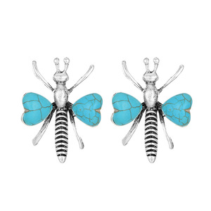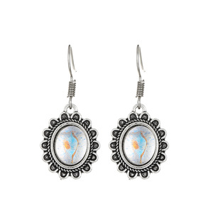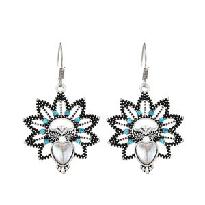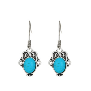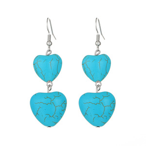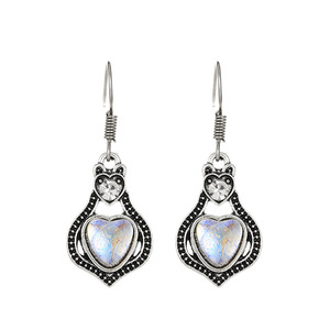 新款爱心绿松石耳环欧美ins风合金做旧几何月光石耳坠民族风耳饰