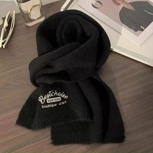 新款冬季韩氛围感网红学院风仿羊绒针织围巾围脖情侣百搭时尚刺绣