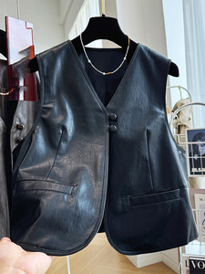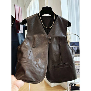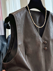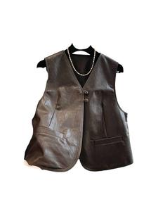 欧货高级感皮马甲背心女年秋法式复古宽松叠穿坎肩外套上衣