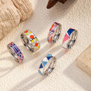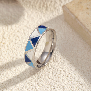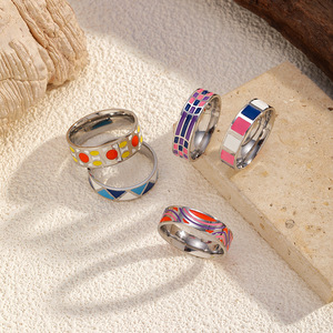 欧美流行钢色简约撞色钛钢戒指彩色滴油拼色不锈钢时尚指环手饰