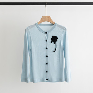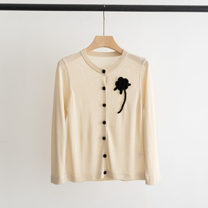 法式手工编织花朵开衫高级感蚕丝长袖圆领针织衫秋天外套女上衣