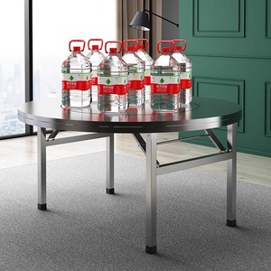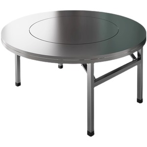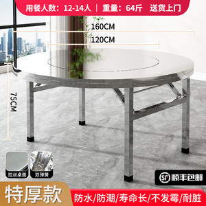 304加厚不锈钢圆桌转盘餐桌一体折叠桌饭桌餐厅家用桌火锅桌批发