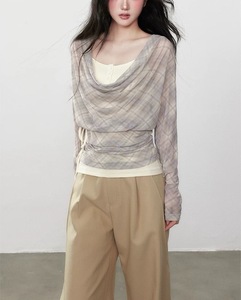 高级感简约荡领衣秋季腰设计通勤气质长袖假两件女