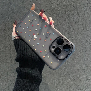 多巴胺小爱心金属镜框适用苹果15/16pro手机壳iPhone14精孔13防摔