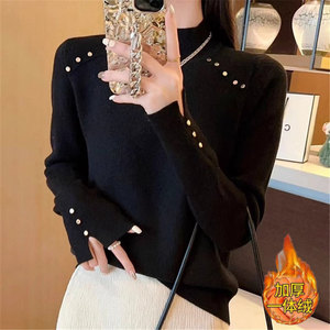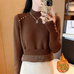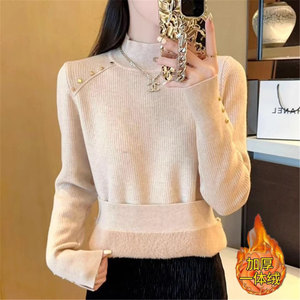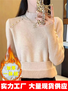 一体绒加绒半高领毛衣女加厚冬季高级感洋气保暖上衣打底衫女内搭