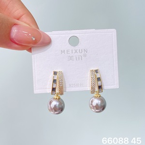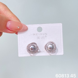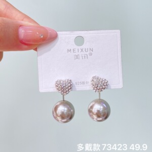 美讯秋冬款气质冷淡风复古灰珠系列耳环个性高级感百搭女耳饰耳环