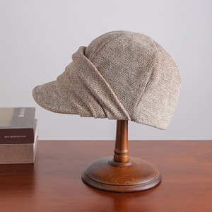 高级感褶皱马术帽女2025秋冬新款百搭显脸小鸭舌帽日系八角报童帽