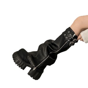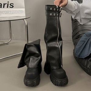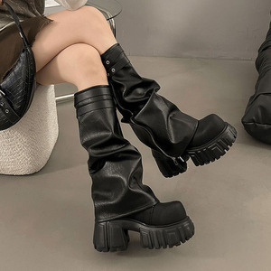 赵露思同款厚底时装靴子女新款粗腿长筒靴2025年西部软皮裤管靴子