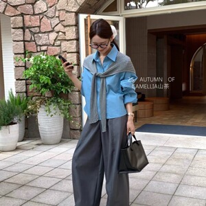 秋上新 韩系百搭短款宽松显瘦衬衫(配披巾) 2025秋季女装新款8100