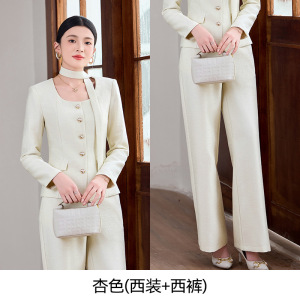 杏色西装+阔腿裤+系带