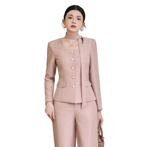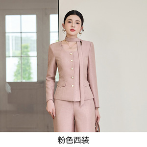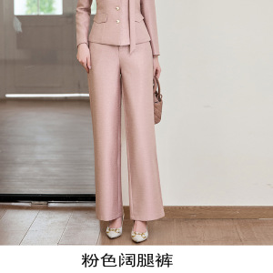 粉色西装+阔腿裤+系带