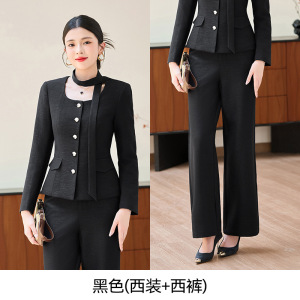 黑色西装+阔腿裤+系带