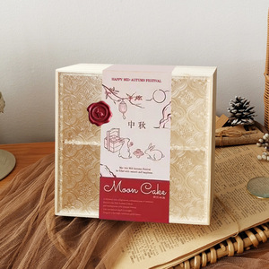 9格透明亚克力盖空木盒+红色简约手绘中秋封条+酒红色随机火漆贴+点胶一个外径约26.5x26.5x