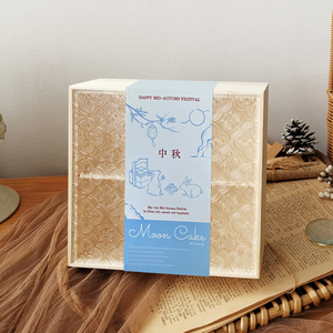 9格透明亚克力盖空木盒+蓝色简约手绘中秋封条+蓝色随机火漆贴+点胶一个外径约26.5x26.5x7