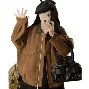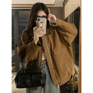 新款美式宽松春秋百搭潮款夹克外套风高级秋季感慵懒洋气女装复古