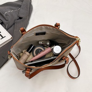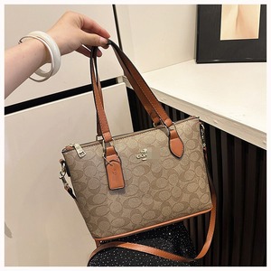 跨境复古印花单肩包女2025新款大容量PU质感手提单肩包通勤托特包