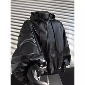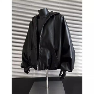 美式复古高级感连帽皮衣男女秋季痞帅宽松百搭休闲机车夹克外套潮