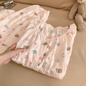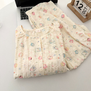 卡通KT猫云朵棉睡衣女春秋季长袖学生甜美圆领休闲宽松家居服套装
