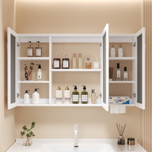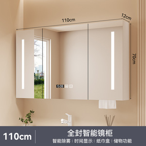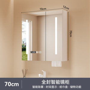 实木智能浴室镜柜单独挂墙式带灯除雾卫生间梳妆镜子洗手间置物架