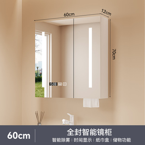 60白色全镜左右带灯三色时间温度除雾 +纸巾口