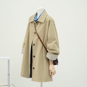 卡其色设计感格子袖休闲风衣外套女2025秋季新宽松显瘦中长款大衣