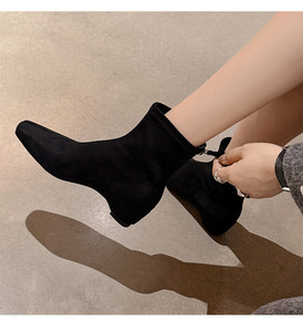 2025年秋冬季新款尖头短靴女女靴子时装粗跟瘦瘦靴小众设计马丁靴