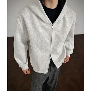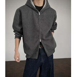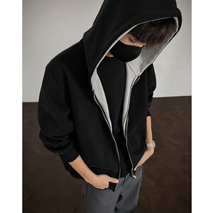 现货实拍图 460克拼色开衫卫衣男女连帽宽松情侣外套运动重磅开衫