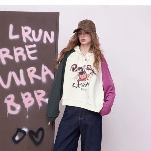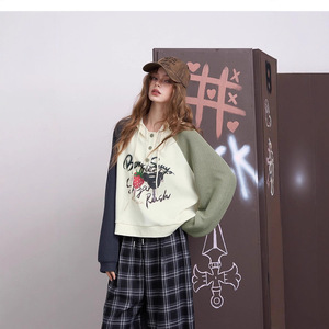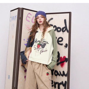 妖精的 「趣味人生」撞色插肩草莓圆领卫衣女小个子短款上衣