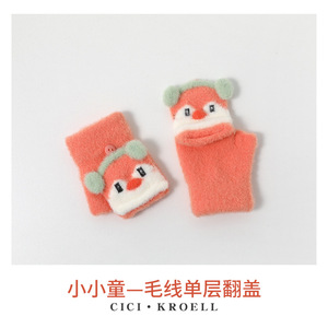 婴幼儿卡通保暖手套秋冬防寒可爱男女宝宝半截露指头音乐企鹅翻盖