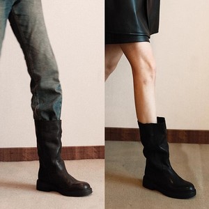 牛皮版~新款真皮英伦风厚底烟筒靴女中筒显瘦中筒骑士靴瘦瘦长靴