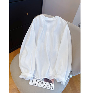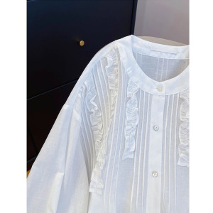 轻奢气质木耳边立领薄款白色衬衫女2025早秋宽松显瘦洋气长袖衬衣
