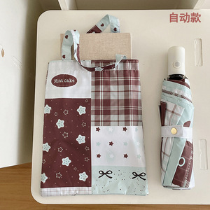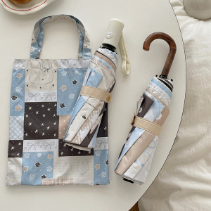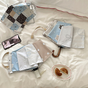 拼布可爱太阳伞弯钩防晒防紫外线遮阳伞小清新女晴雨两用折叠雨伞