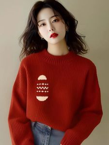 超好看圆领毛衣女款新款秋冬季软糯厚针织衫慵懒风上衣
