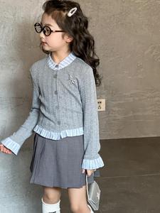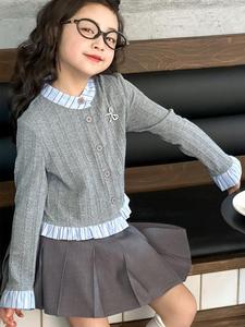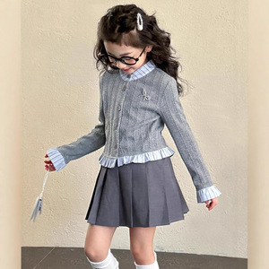 小红鱼女童套装秋装2025新款儿童春秋款针织开衫外套百褶裙两件套