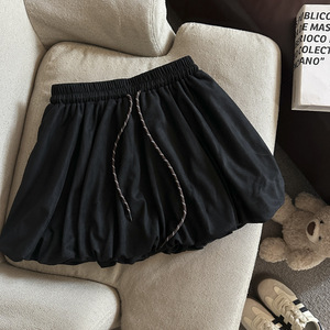 实拍 秋冬新款韩版简约纯色百搭半身短裙女高腰显瘦松紧腰A字裙