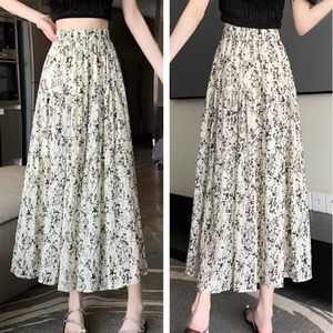 碎花褶皱半身裙女2025夏季新款高腰显瘦A字大摆裙中长款百褶伞裙
