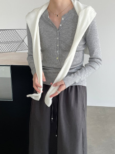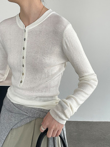 滔川 本期强推!高级感贝壳扣显瘦打底衫女圆领修身内搭上衣YL801