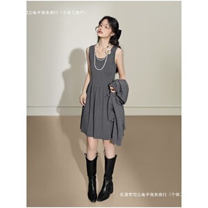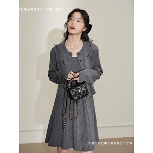 灰色连衣裙开衫小香风针织两件套装2025秋冬新款女早秋穿搭一整套