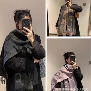 2025新款双面羊绒g家围巾女士字母羊毛流苏披肩长款加厚保暖围脖