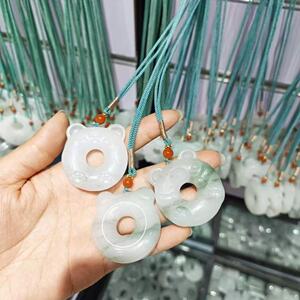 天然小猫耳朵猫猫圈骨头蝴蝶天山翠平安环甜甜圈玉石平安扣吊坠