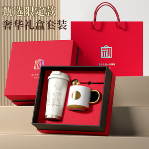 陶瓷内胆铃兰咖啡杯+陶瓷杯+勺子+红色礼盒