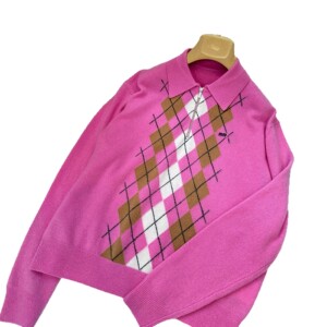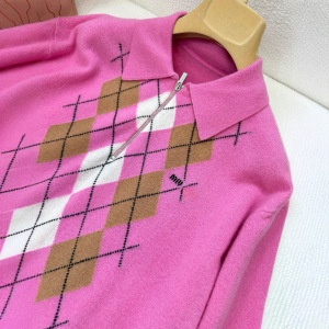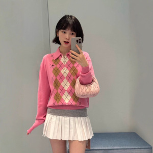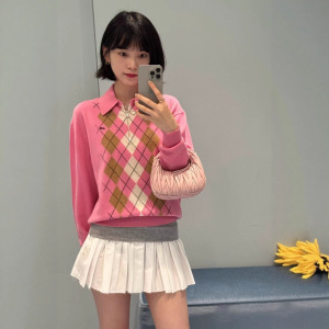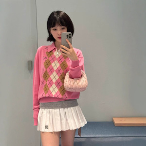 2025早秋新款南油miu时尚休闲风半拉链格子字母翻领长袖针织衫女