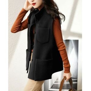 2025秋冬季新款洋气立领显瘦百搭毛呢马夹外套女口袋工装风外套女