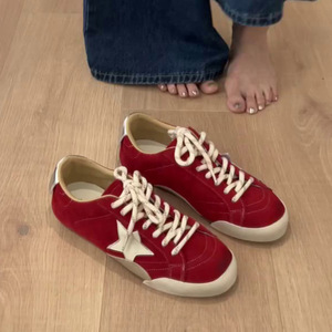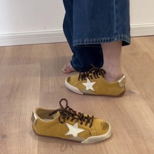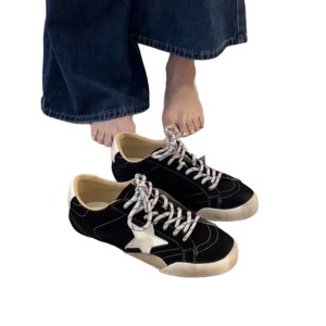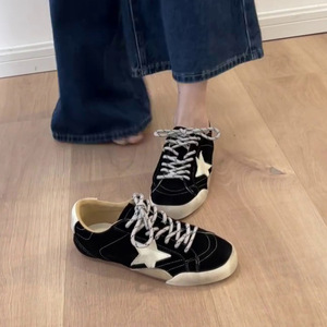 牛皮版~做旧复古擦色星星板鞋小脏鞋平底德训鞋女圆头休闲运动鞋