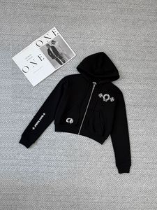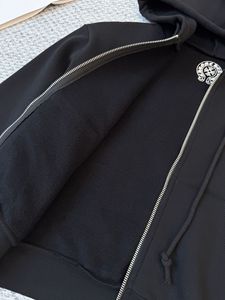 正确版 25ss新款秋冬克罗伈三元素印花黑色马蹄拉链连帽卫衣外套